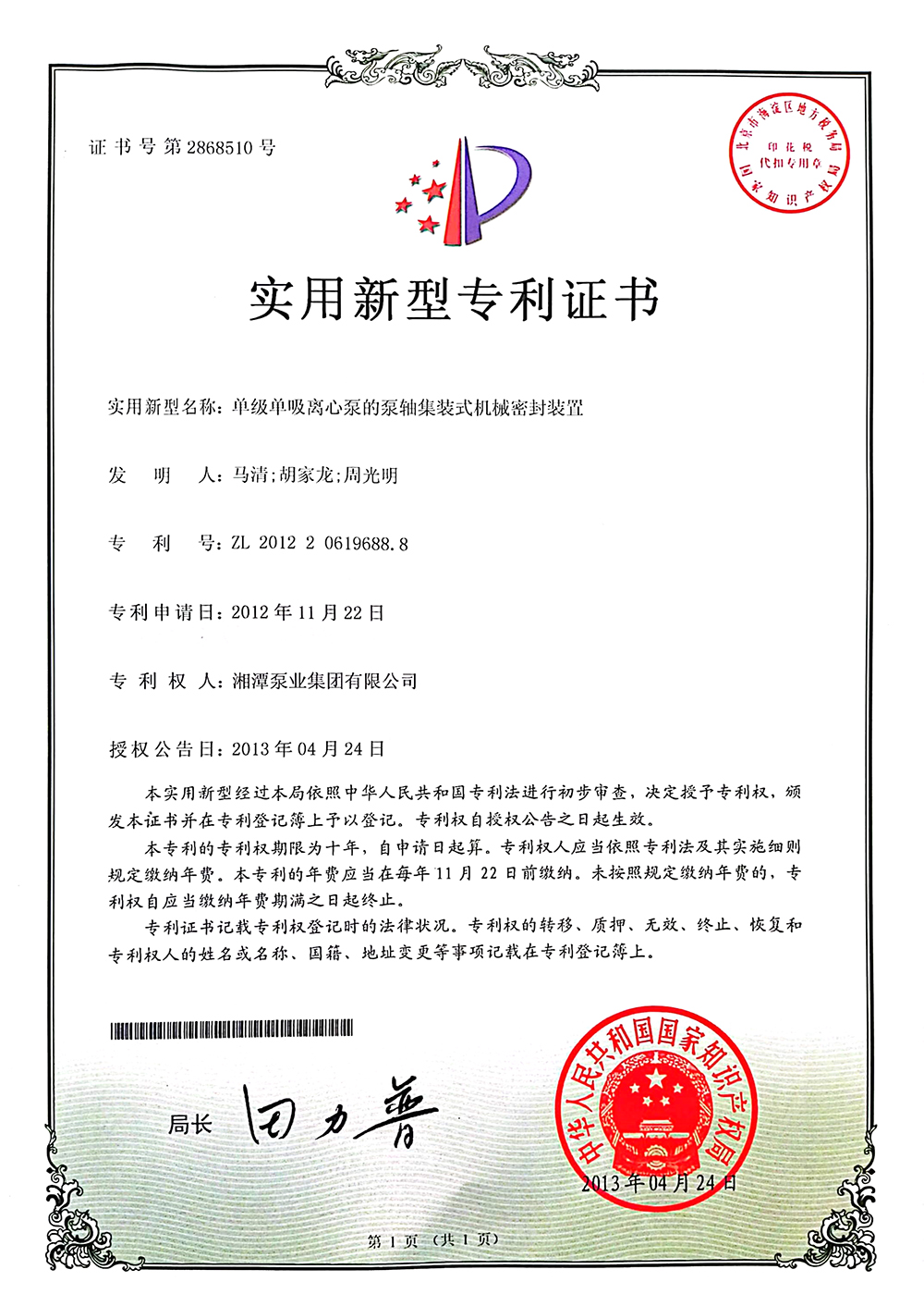 單級單吸離心泵的泵軸集裝式機(jī)械密封裝置