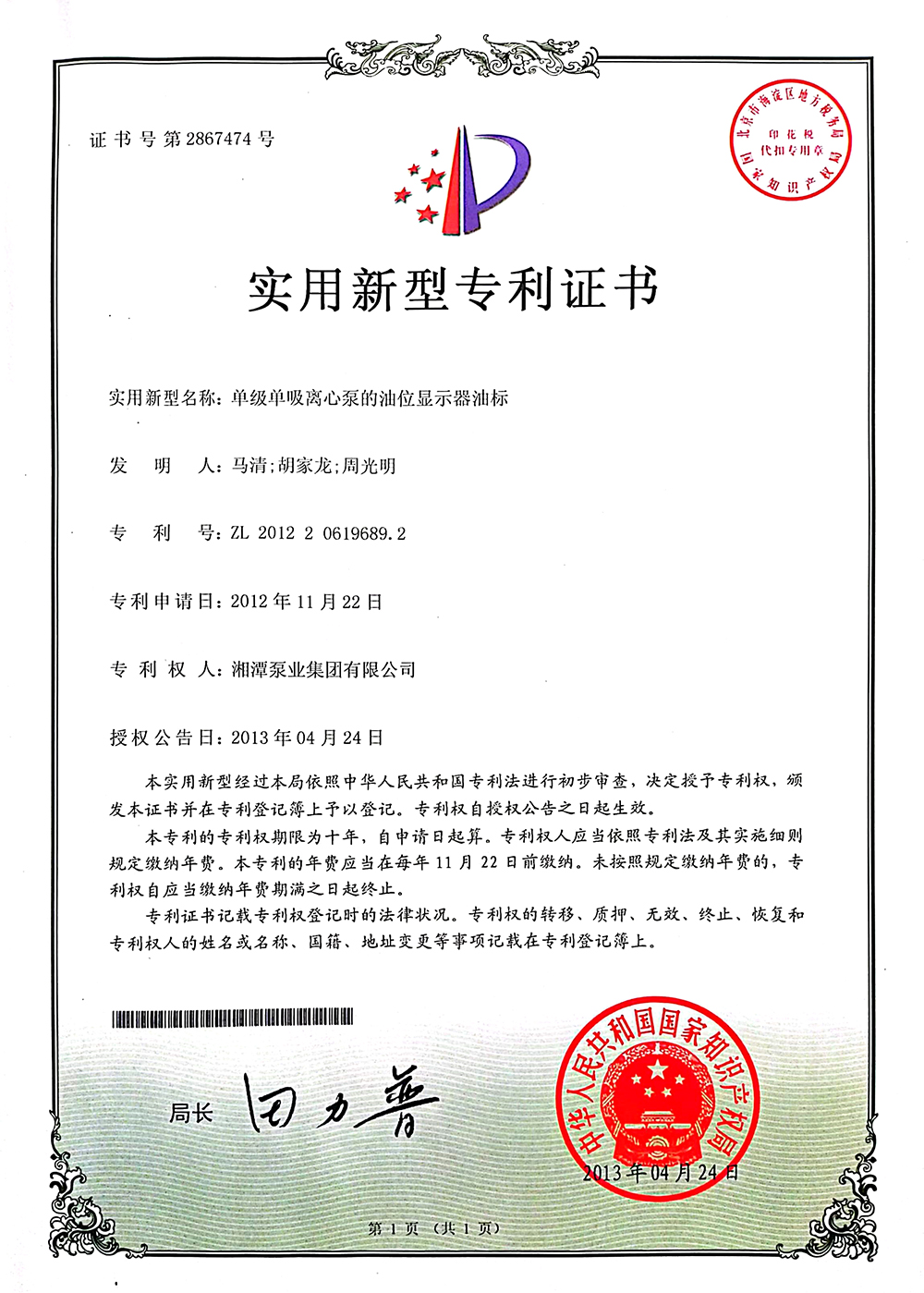 單級單吸離心泵的油位顯示器濁標(biāo)