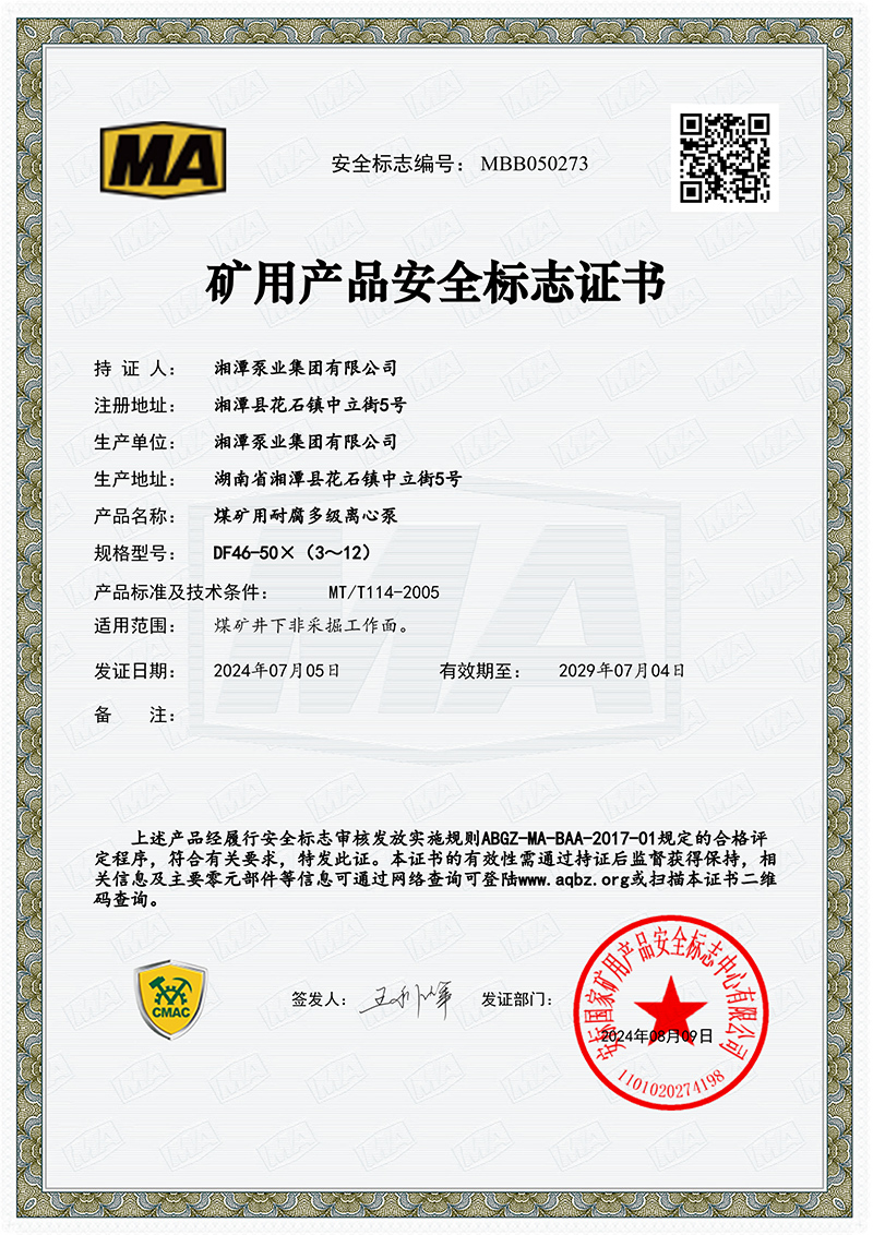 煤礦用耐腐多級(jí)離心泵 DF46-50X(3-12)
